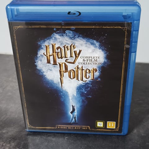 Harry Potter Complete 8-Film Collection Blu-ray -boksi. Sisältää kaikki kahdeksan Harry Potter -elokuvaa erillisinä Blu-ray-levyinä yhteisessä kotelossa.
