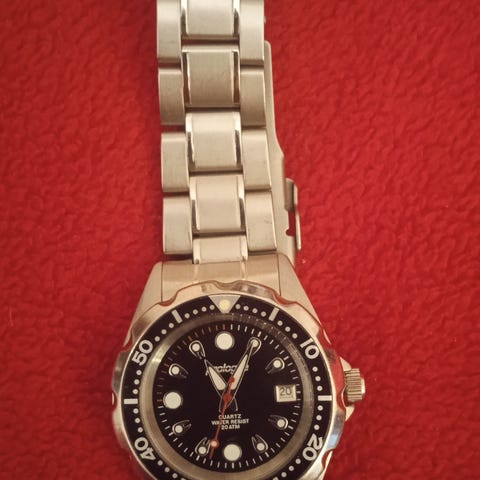 Proloque niminen rannekello teräskuorella ja - rannekkeella, hopeanhohtoisella kellotaululla päivyrinäytöllä kello 3 kohdalla. Kello on kuin uusi. Merkintä 5ATM= sateen, roiskevesisuojattu, suihkun/kylpemisen ja uimisen kestävä. Huomioitavaa on että tiivisteet hapristuvat ajan myötä ja silloin vedenpitävävyys voi myös pettää kellon kohdalla. Kello käy ajassa nykyisellä paristolla toistaiseksi.