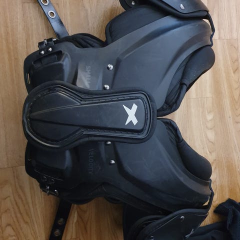 Schutt-merkkiset amerikkalaisen jalkapallon hartiasuojat koossa XLARGE 19-20”. Pientä käytön jälkeä, mutta muuten moitteettomassa kunnossa.
