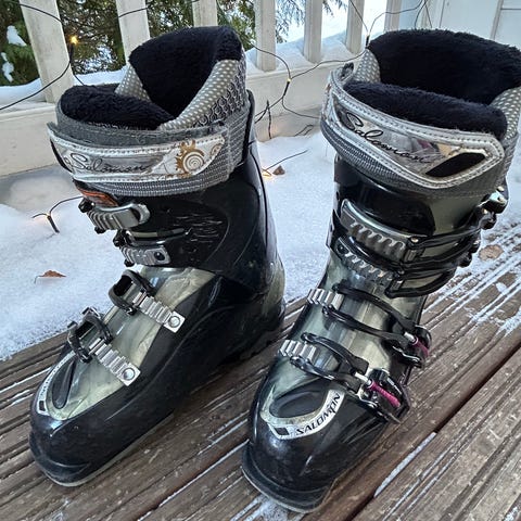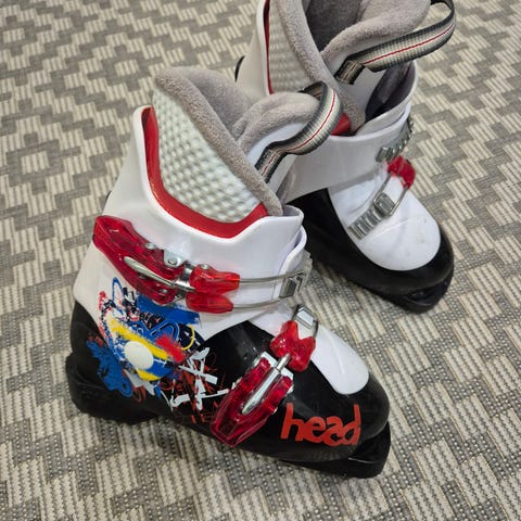 Myydään lasten monot lasketteluun. Head merkkiset. Ihan siistissä kunnossa sekä ulkoa että sisältä. Pohjassa on merkintä 220-225, ilmeisesti niin sanottu Mondo koko, joka viittaa jalan mittaan tai monon sisämittaan millimetreinä. Tämä vastaa käsittääkseni noin kokoa 34 tai 35. Alareunassa merkintä 261 mm joka tarkoittaa monon ulkomittaa, mitä tarvitaan esimerkiksi siteen säätämiseen oikean pituiseksi.