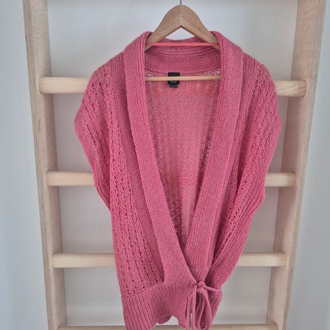 Espritin meleerattu eli eläväpintainen villasekoiteliivi on mukavaa mallistoa ja oversize-tyyppinen, siinä on laskettu olkalinja sekä pitempi takahelma ja liikkuvuutta lisäävät sivuhalkiot. Reunoja kiertää näyttävä "ribbi", jot aie kuitenkaan kurista neuletta kokoon vaan laskeutuu kauniisti. Villan lisäksi materiaalissa on polyamidia, akryylia ja hiukan elastaania (huippumukava!). Hienopesu, koko XL.