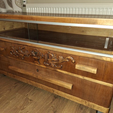 Paksusta puusta tehty erikoisempi tv-taso. Kaksi osaa. Irrallisia. Voidaan asettaa vieretysten melkein miten tahansa kunhan korkeampi on matalamman päällä edes vähän. Tosi järeä setti. Ehjä. Ollut omassa käytössä vuosikymmeniä. Ensin mutsilla ja möyhemmin sitten itsellä. Rakas Mutsi suunnitteli tämän ja eräs puuverstas teki osat. Äärimmäisen minimalistisen ja yksinkertainen. Ajaton. Pinnat voisi laittaa uusiksi jos rustiikkisuus ei puhuttele. Korkeampi on 35 syvä, 60 leveä ja 53 korkea. Matalampi on 27 korkea, 35 syvä ja 80 leveä. Matalan pohja on allaalta käsin rautavahvisteinen. Kestää! Vaikka mitä! retro vintage pöytä tv-taso kukkapöytä apupöytä sivupöytä sidetable rustic heavy duty tv stand