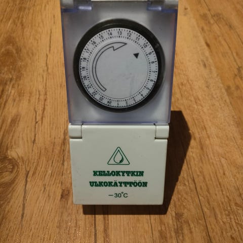 Käyttämätön mekaaninen 1-kanavainen Grässlin-kellokytkin 2:n tunnin kytkentäajalla. Sopii ulkorasioihin ja pakkasen kesto -40C.