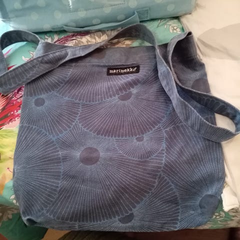 Marimekon Kaste Siirtolapuutarha-laukku. Ollut vähäisellä käytöllä ja pysynyt hyvässä kunnossa. Myydään ilman hihnaa.