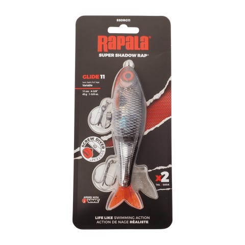 Jerkki, jossa on houkutteleva uintiliike ja säädettävä uimasyvyys SDS-painojärjestelmällä. Terävät kolmikoukut, joissa on leikari. Mukana ylimääräinen pyrstö.Rapala Super Shadow Rap Gliden uusi versio on tunnettu haukikalastajien suosikki. Se on oppinut muutamia uusia temppuja edellisen kerran jälkeen. Siinä on houkutteleva S-uintiliike. Jos uintisyvyyttä on säädettävä, voit säätää painoa nopeasti ja helposti mullistavan SDS-järjestelmän avulla.Super Shadow on nivelletty ja mukana tulee ylimääräinen pyrstö, joten voit valita luonnollisemman ulkonäön tai aggressiivisemmat värit.Hitaasti kelattaessa Super Shadow Rap Glide ui tasaisella S-kuviolla, ja nykiessä se ui lyhyin käännöksin. Kun kala on kiinni, leikareilla varustetut koukut varmistavat, että onnistumisprosentti kasvaa.Yksityiskohdat:- Luonnolliset uintiliikkeet - Koukut, joissa on leikarit- Mukana ylimääräinen pyrstö - Screw Driver System, painojärjestelmä, jonka ansiosta uintisyvyyttä voi säätää - 5 g SDS 11 cm - 10 g SDS 16 cm- Muut SDS-painot (Tungsten) myydään erikseen- Kestävät rengasliittimet- VMC® 8651BN4551BN -kolmoiskoukut