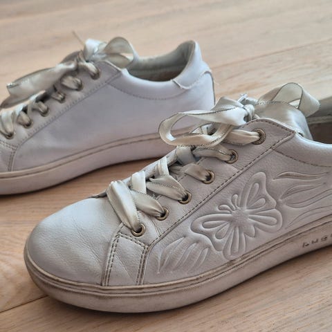 Saappaat on ostettu Stockmannilta ja vain vähän käytetty, mutta hiukan liian tiukat paksulla talvisukalla. Olleet käytössä vain kerran pari, mutta toiseen kenkään ehti tulla pieni naarmu logon tienoille, huomioitu hinnassa. Hoidettu nahanhoitoaineilla ja säilytetty laatikossa silkkipaperissa. Pohjista näkee, että nämä ovat uudet. Laadukkaat, näyttävät kengät!