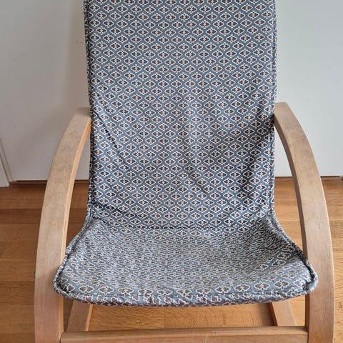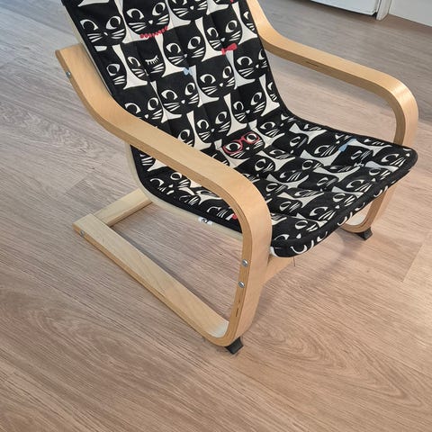 Tyylikäs ja räväkän värinen nojatuoli lastenhuoneeseen. Sopii n. 1-5 -vuotiaalle. Meidän taapero kovasti tykännyt tähän kiivetä istuskelemaan. Selkämyksen verhoilussa harmillisesti pari reikää. Ei eläimiä taloudessa. Nouto Sompasaaresta.