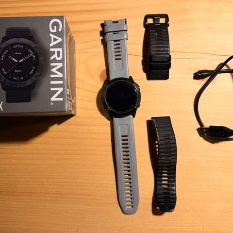 Akku erinomainen, (20 päivää kesto täyteenladattuna). Mukaan laturi, pari vaihtoranneketta, ohje ja alkuperäispakkaus.