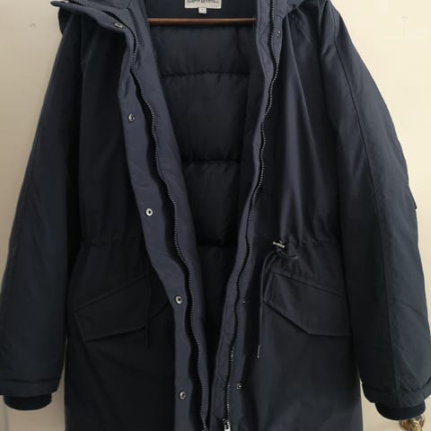 Hyväkuntoinen Hampton Republic-takki, jossa ihana valkoinen karva. Tuulenkestävä. Ainoa "vika" on toisesta narusta puuttuva nahkasolki ja yhden napin puuttuminen alimmassa rivissä mutta ei haittaa mitenkään käyttöä.