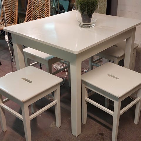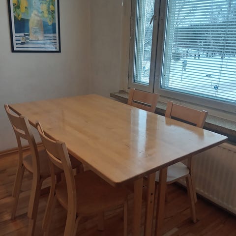 Oikein hieno ruokapöytä joka on aikoinaan ullanlinnasta tuotu Lahteen. Tukevaa tummaa puuta ja kummalliset kiehkura/pyörremaiset jalat lisäävät kiinnostusta