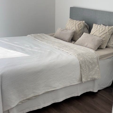 Ikean Espevär sängyn runkokehikko ja Valevåg pussijousitettu kiinteä patja