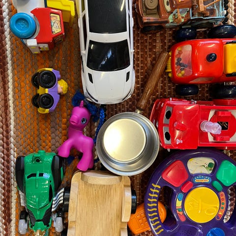 Lasten lelujen sekalainen paketti, johon kuuluu muun muassa värikäs muovinen lelujuna, kaivinkonelelu, Paw Patrol -aiheinen rumpu kapulalla, vihreät leikkisukelluslasit sekä monivärinen muovinen lelu, jossa on useita ovia. Sopii leikki-ikäisille lapsille kotileikkeihin ja mielikuvitusleikkeihin.