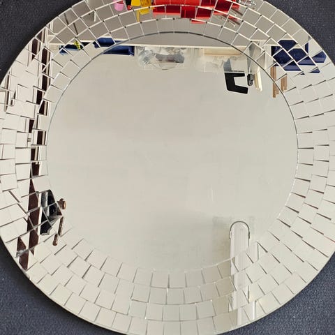 Pyöreä käsipeili, jossa musta muovinen kehys ja tausta. Peilissä on taustapuolella kahva, josta sitä voi pitää kädessä tai ripustaa. Soveltuu esimerkiksi henkilökohtaiseen peilaukseen kotona tai matkalla.