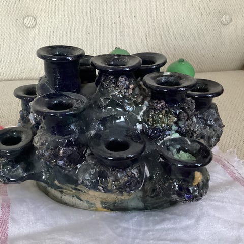 Yhtä kynttilänpaikkaa korjattu ja yhdestä puuttuu pieni siru. Viat olen yrittänyt saada kuviin. Steariinia siellä täällä. Nouto Hki Käpylä tai toimitus matkahuollolla jolloin kulut lisätään.