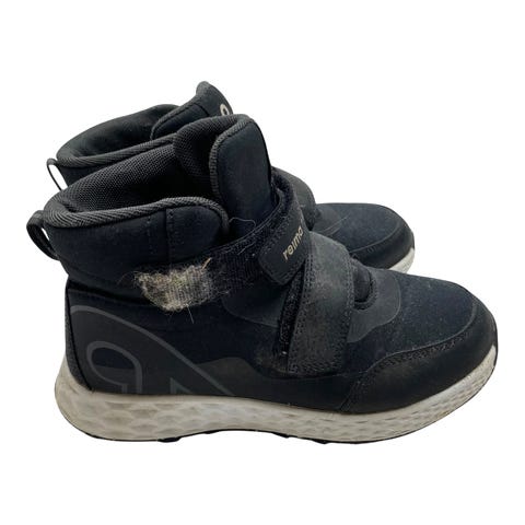 Vedenpitävät kengät, joiden päällinen on synteettistä materiaalia ja tekstiiliä. Tarranauhasuljenta ja joustavat nauhat. EVA-pohja kierrätettyä kumia. Irrotettava pohjallinen ja heijastavat yksityiskohdat.Reima Hiipien ReimaTec -kengät ovat vedenpitävät, vuoraamattomat jalkineet. Päällinen on synteettistä materiaalia ja tekstiiliä. Tarrakiinnitys.Kenkien kylmäeristys on testattu -10 °C:seen asti, ja niissä on vedenpitävä rakenne ja teipatut saumat.Pohjallinen on irrotettava, kun taas EVA-välipohja tekee kengistä kevyet.