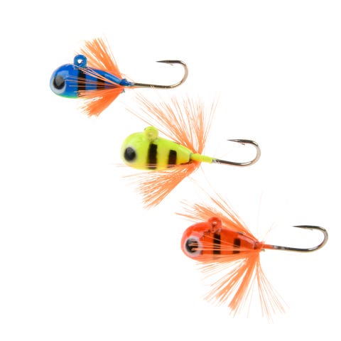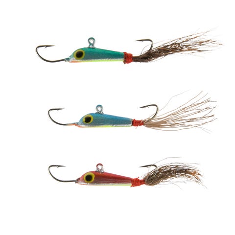 Kaksi Wolfram-mormuskaa järvipilkkiin.
