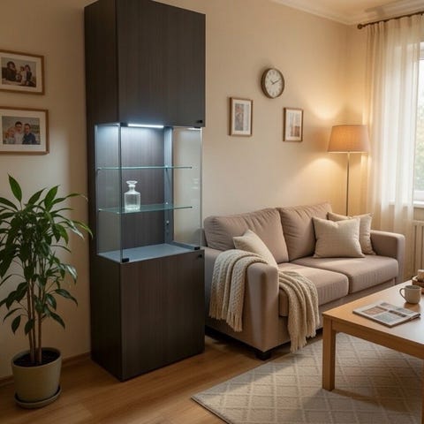 🧽 Vitriinikaappi on huolellisesti puhdistettu ja heti käyttövalmis.
