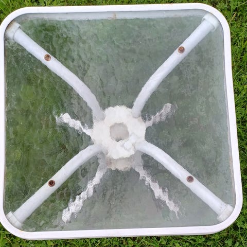 Lasikannellinen pöytä