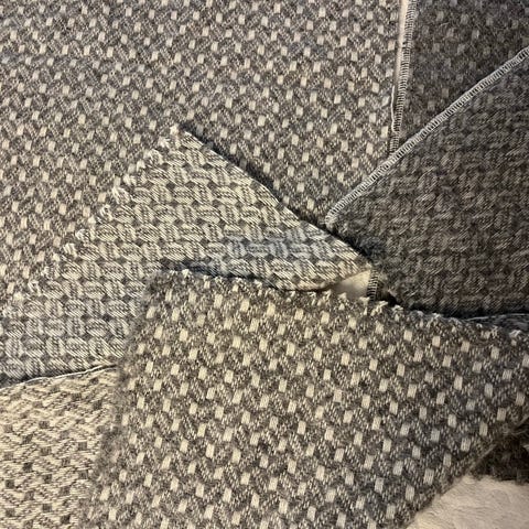 Ostan viininpunaista ja yönsinistä villakangasta.