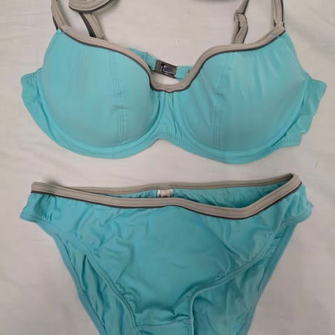 Myydään yhden kerran käytetyt siistit kauniit bikinit.Bikinit on pesty ja ei ole ollut eläin taloudessa.Olkaimet voi irrottaa.Bikinit on Lehmossa.