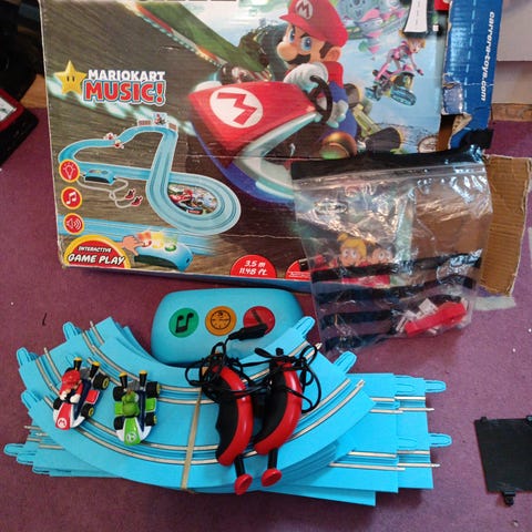 Mariokart autorata. Kaikki osat tallella. Tällä ei vaan enää leikitä.