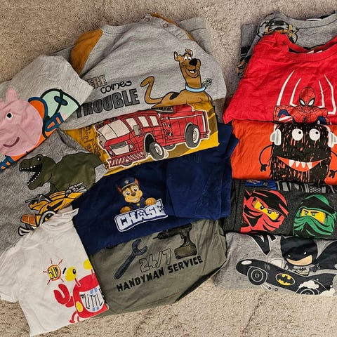 Kovasti käytettyjä vaatteita seuraavalle. Ehjiä ja käyttökelpoisia yhä. Koot 86-98.