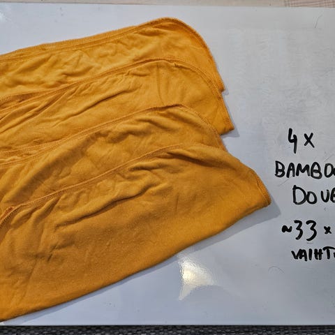 Legendaarisia bamboo doubler imuja 8 kpl. Näitä on käytetty PALJON, eli ovat tosi kuluneita jo, pientä reikääkin osassa on ja sisuksissa voi olla nöyhtää. Imukyky edelleen erinomainen, kivan kokoinen lisäimu taittoimun kanssa, joten eiköhän nämä vielä hetken toimi käytössä. Katso muutkin ilmoitukseni, vaippailun loputtua kaikki vaipat lähtee myyntiin pojalta :) Kestovaippa, kestovaipat, kestot