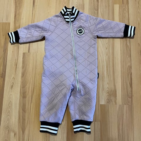 Reima haalari, koko 86 cm. Väri punainen ja materiaali polyesteriä. Haalarissa on huppu, pitkät hihat ja lahkeet sekä edessä vino vetoketju helpottamassa pukemista. Lahkeensuissa on kuminauhat ja jalkalenkit, jotka auttavat pitämään lahkeet paikoillaan.