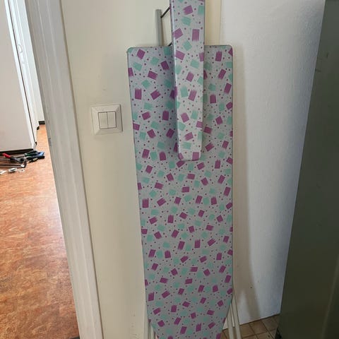 Muutaman kerran käytetty pöytämallinen silityslauta. Laudassa koukku säilytystä varten.