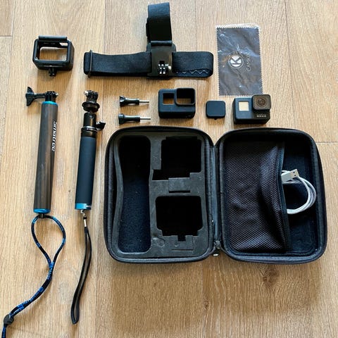 GoPro Hero 12 actionkamera. Vähälle käytölle jäänyt hyväkuntoinen gopro. Mukaan kuvassa näkyvät tarvikkeet.