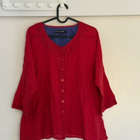 Myydään punasävyinen Gudrun Sjöden pellava-puuvilla takki. Pellava 52 %, puuvilla 48 %. Myös vuori on pellava-puuvillasekoitetta.
