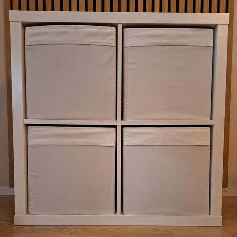 Myydään neljälokeroinen ikean hyllykkö, sivusta on yhdestä kohtaa maalattu pieni rokama. Yleisilmeeltään siisti, jotain pientä käytönjälkiä voi olla.
