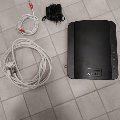 Käyttämätön kaapelimodeemi, kaikki alkuperäiset osat tallessa.