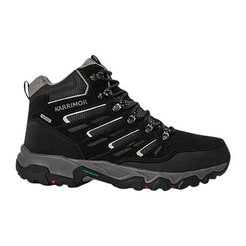 Vedenpitävät vaelluskengät, joissa on täyspitkä nyöritys edessä ja pehmustettu vaahtomuovipohjallinen. Päällinen mokkanahkaa ja verkkokangasta. Syvä uritettu pohja antaa pitoa ja tukea.Vedenpitävissä Karrimor Mount Low -vaelluskengissä on täyspitkä nyöritys edessä ja pehmustettu vaahtomuovipohjallinen, ja hengittävä ja vedenpitävä rakenne pitää jalat kuivina ja mukavan tuntuisina.Näissä vaelluskengissä on syvä uritettu pohja pidon ja tuen takaamiseksi, ja Karrimor-logo antaa upean ilmeen.Yksityiskohdat:- Vedenpitävä/hengittävä Weathertite - Phylon-välipohja - Kanta- ja ilttihihnat.- Arete III -pohja.- Päällinen mokkanahkaa ja verkkokangasta
