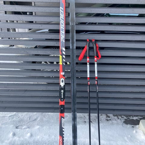 160 cm lasten pitopohja sukset, sauvat 110cm. Suksissa NNN monoille tuleva side. Ainoastaan nouto. Postimaksut nostavat hintaa liian paljon.