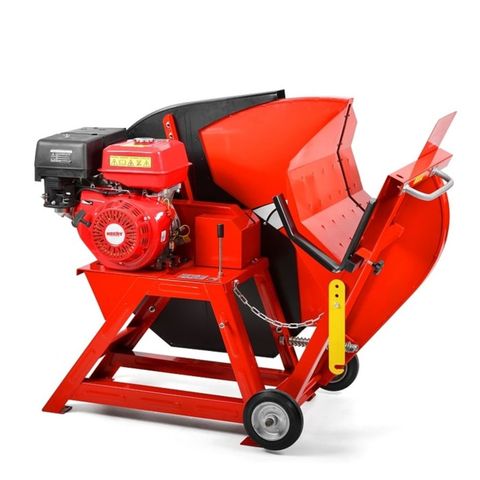 Itse muunnettu, niin että puun saa kelkalla kierukkaan ja sieltä pois. Hydraulisylinterillä mahdollisuus halkaista isompia puita.