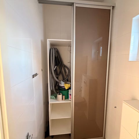 Erittäin hyväkuntoinen Puustelli liukuovikaappi vuodelta 2021. Toinen ovi peili toinen valkoinen, valk runko. Sisällä erillinen runko ja vaatetanko jotka tulevat mukaan.