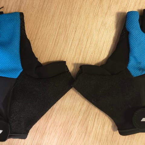 Lyhytsormiset pyöräilyhanskat. Päällipuoli on musta ja siinä on polkupyöräkuvio, sisäpuoli on harmaa. Hanskoissa on pehmusteet kämmenissä (nahkaa) ja tarrakiinnitys ranteessa. Soveltuvat pyöräilyyn ja muuhun ulkoiluun. Hinta 3 euroa. Voin lähettää. Mmm.