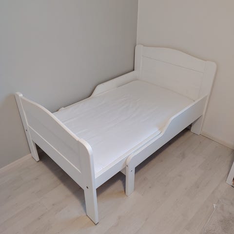 Hyvässä kunnossa oleva 70x140cm juniorisänky. Mukaan saa halutessaan 11cm paksun Dreamzonen patjan.