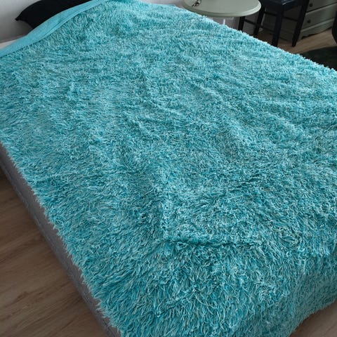 Valkoinen siisti karvalankamatto. Taloudessa ei lemmikkejä.