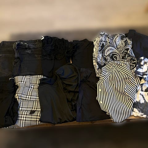 Pieni vaatepaketti, neljä siistikuntoista lyhythihaista ruutupaitaa. Kaikki eri merkkejä, ja koot hieman vaihtelee. Eivät minusta kuitenkaan ole mitenkään erityisen väljää mallia ja sanoisin, että kokoluokka (36)/38 vastaa näitä parhaiten.