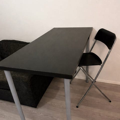 Jatkettava pöytä on ollut vuosia käytössä ja maalipinnassa on luonnollista kulumaa. Pöydän alapuolella yksi ohut poikkilauta on hieman lohjennut mikä on vain kosmeettinen virhe. Pöytä on vahvaa tekoa rakenteeltaan ja materiaali puuta.