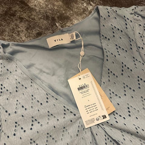 Kerran pidetty Vilan vaaleansininen mekko. Koko L.