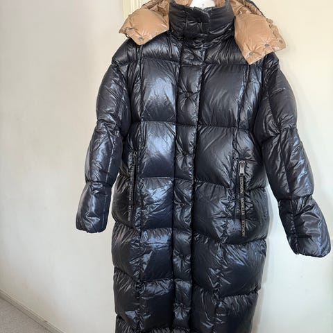 Moncler Huppelong Giubbotto koossa 1 (36-38 )väriltään musta. Pitkä malli jossa kiiltävä pintamateriaali ja hupullinen kaulus hupussa lukee isolla Moncler minkä saa piiloon vetoketjulla peittäen Takissa on etuvetoketju, vetoketjulliset sivutaskut sekä sisäpuolella Monclerille tyypillinen sarjakuvavuori ja aitousmerkinnät erittäin muhkea lämmin reilua kokoa hihansuissa vetoketjut sekä helmoissa.Takista on tilaus vahvistus sekä oma pussukka ja henkari