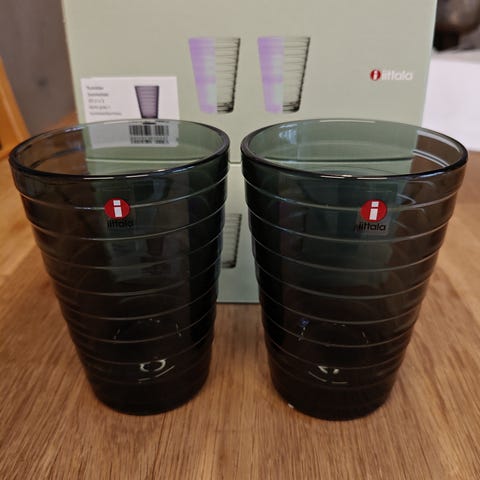 Myydään Iittalan Aino Aalto juomalaseja 4kpl. Koko 33cl. Väri siniharmaa (?).