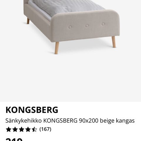Jysk Sankykehikko KONGSBERG 90×200 beige kangas (without mattress)