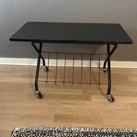 Tv taso laatikolla. Yks pieni reikä laatikon ovessa ja pari tahraa päälly osassa, ei oo koitettu kunnolla putsata