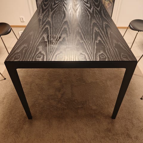 Ikean Lerhamn -ruokapöytä. Musta / mustanruskea. Ehjä. Käytön jälkeä näkyy maalipinnassa. Puuta, joten mahdollista esim. maalata uudelleen.