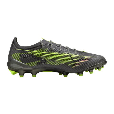 AG-nappuloilla varustetut jalkapallokengät tekonurmelle. Osittain kierrätetty päällinen neljään suuntaan joustavaa materiaalia äärimmäisen mukavuuden ja erittäin kevyen painon takaamiseksi.Puman ULTRA 5 Ultimate -kengissä on erittäin kevyt GripControl Pro -päällinen, joka on valmistettu ohuesta synteettisestä materiaalista. Päällinen edistää hyvää pallotuntumaa ja mukavuutta nurmella.Kengän sisäpohjan NanoGrip-tekniikka estää jalkaa liukumasta kengän sisällä. Kengässä on myös kätevä, innovatiivinen PWRTAPE-sukkaosa, joka takaa hyvän tuen pitkienkin treenien aikana.SPEEDSYSTEM-ulkopohja on suunniteltu nopeuttamaan suunnanmuutoksia ja kiihdytyksiä. Ulkopohjassa on myös FastTrax-nappulat, joiden uniikki muoto on suunniteltu takaamaan maksimaalinen pito optimaalisen kiihtyvyyden saavuttamiseksi.