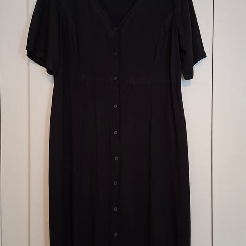 H&M arkimekko, koko L. Musta, pitkähiuksinen kaulusmekko, jossa napitus edessä ja vyö samalla kankaalla vyötäröllä. Materiaali viskoosia. Sopii arkipukeutumiseen esimerkiksi töihin tai vapaa-aikaan.